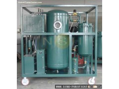 NSH centrifugal separators, using principle of different density of oil, water, solid (light, heavy phases) getting different velocity, separate the insoluble liquids or solid particles. After getting through heating system, the viscosity of oil lowers down. Then it is fed in through a system of closed lines. The heavy liquid phase is pressure discharged by means of a centripetal pump (7). The clean oil is also discharged by means of a centripetal pump (8). The centrifuges operate with regulating rings for the heavy phase.